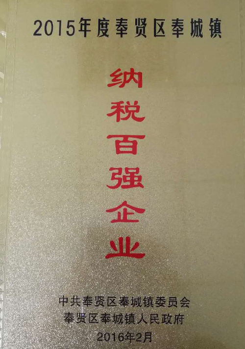 纳税百强企业证书